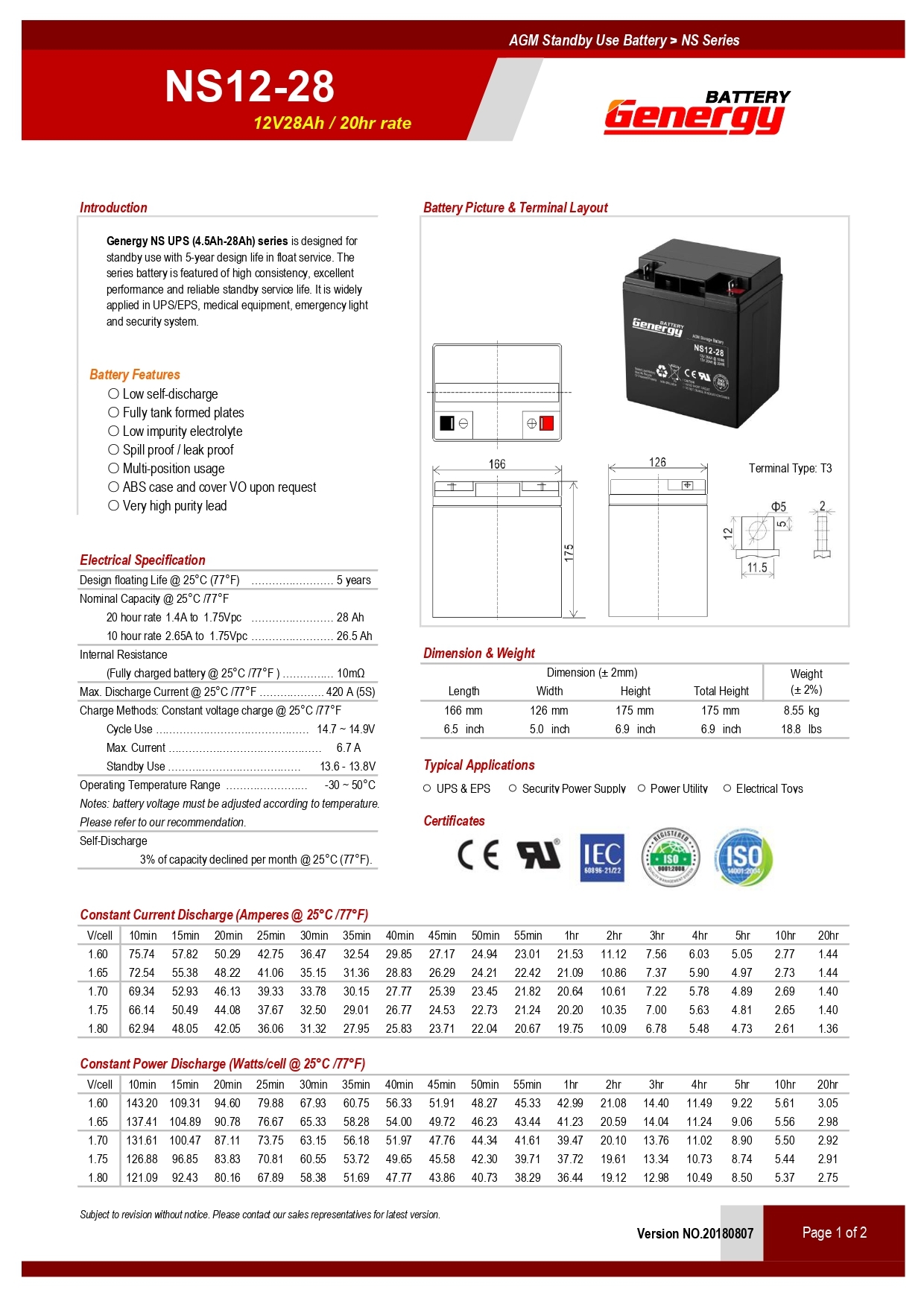Rating: 12V, 28Ah