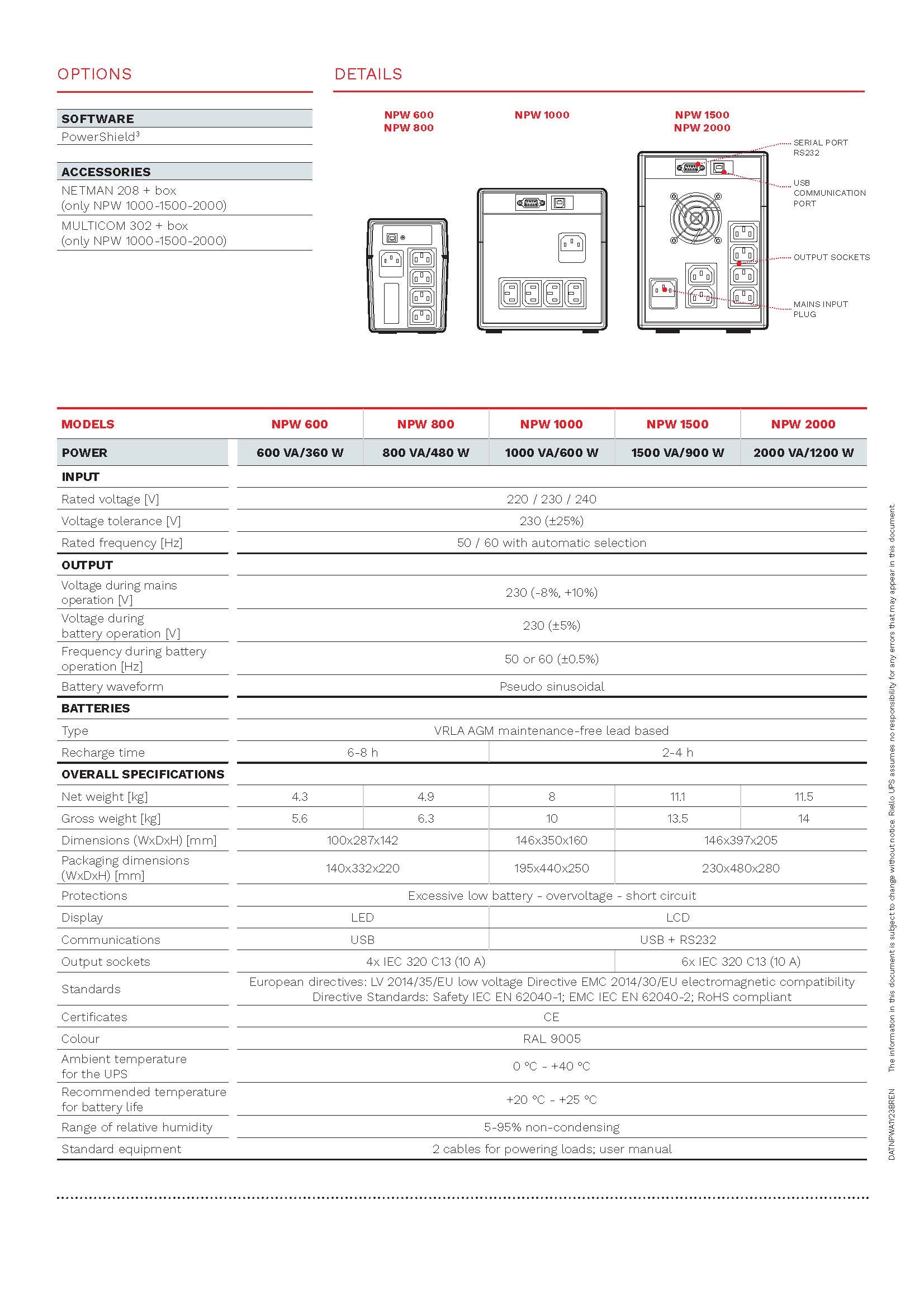 RIELLO NPW 1000 後備電源機